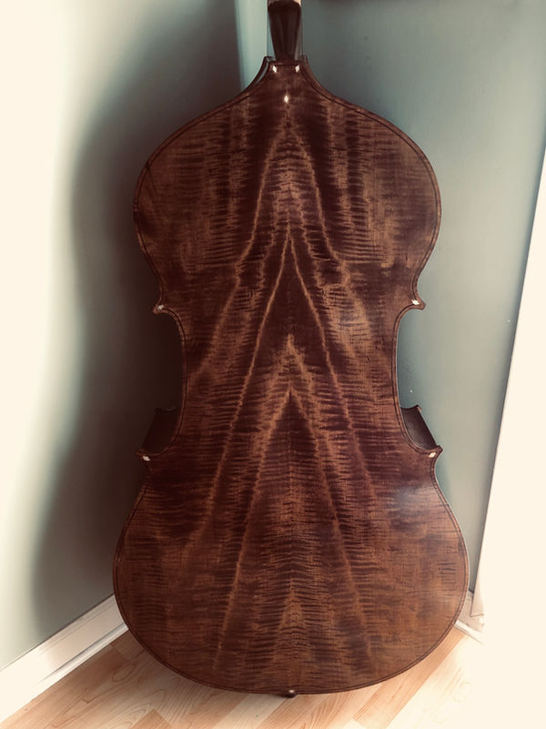 Great to see Emily Krajewski of The Winnipeg Symphony Orchestra and Kyle Sanborn of The Minnesota Orchestra this afternoon. Emily picked up her bass with a new custom chromatic C extension that I made for it. Emily and Kyle also played #55, and a big thank you to Cheryl Jacobsen for a gorgeous label for #55!
